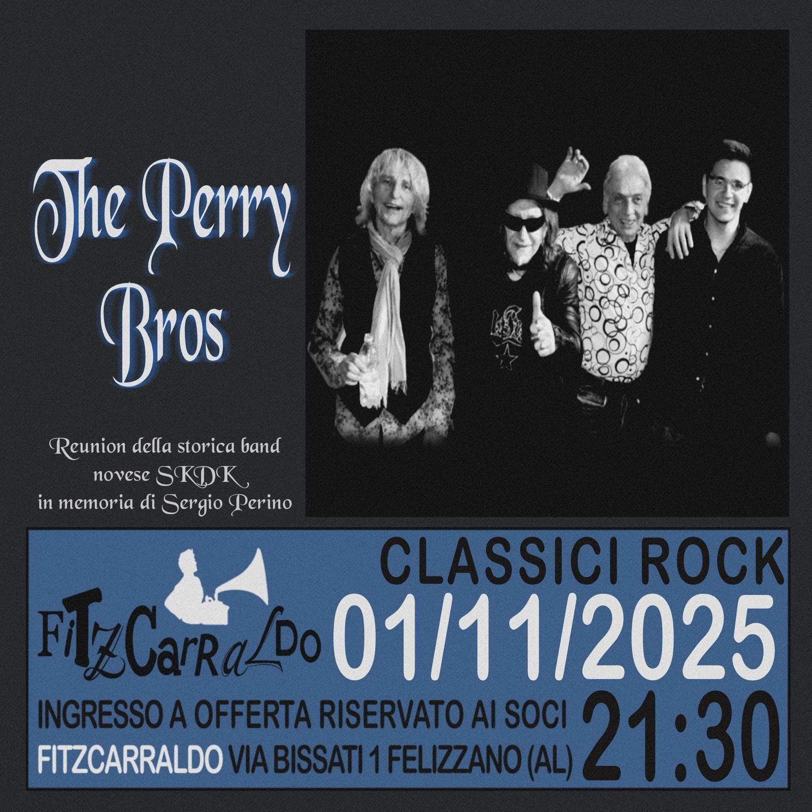 Reunion della storica band Novese "SKDK" per ricordare Sergio Perino il loro indimenticato bassista a due anni dall'ultima serata della sua vita che fece proprio con gli SKDK. The Perry Bros eseguiranno il repertorio che ha da sempre contraddistinto la band con i classici intramontabili del rock internazionale 60/70/80. Dai Doors a Lou Reed eJimi Hendrix ma anche tanto ancora.